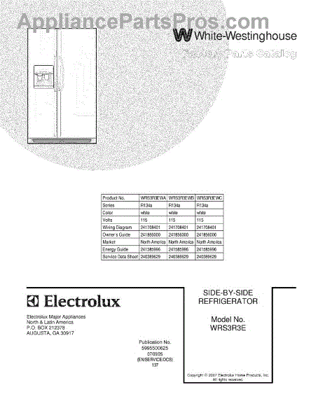 Parts for White Westinghouse WRS3R3EWB: 01 - Cover Parts