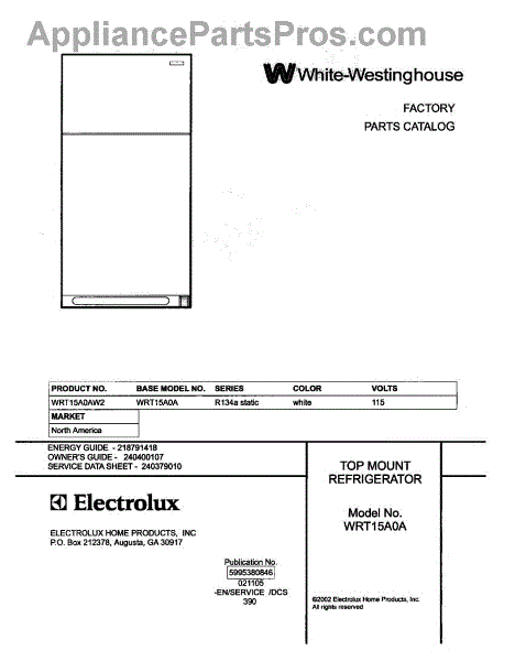 Parts for White Westinghouse WRT15A0AW2: 01 - Cover Parts