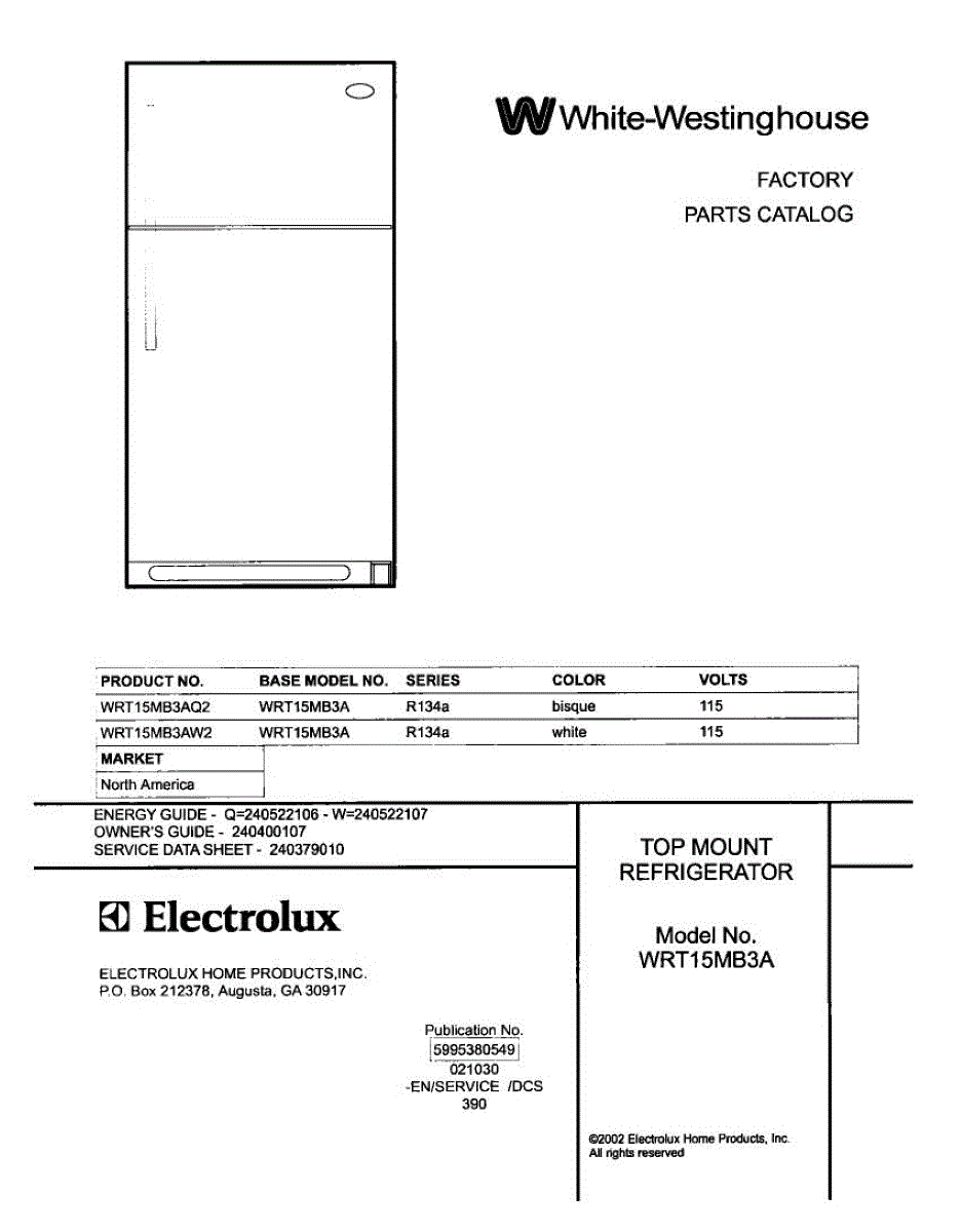 Parts for White Westinghouse WRT15MB3AQ2: 01 - Cover Parts