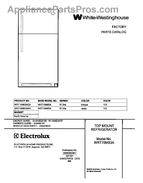 Parts for White Westinghouse WRT15MB3AQ3: 01 - Cover Parts