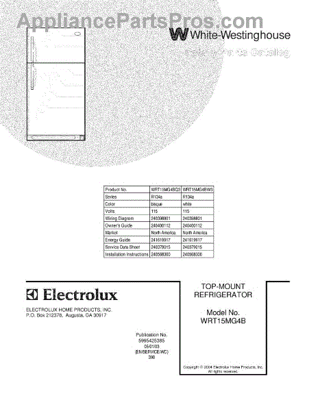 Parts for White Westinghouse WRT15MG4BQ3: 01 - Cover Parts