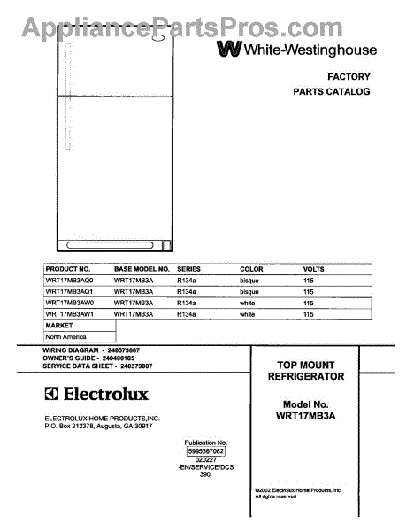 Parts for White Westinghouse WRT17MB3AW1: 01 - Cover Parts