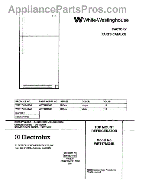 Parts for White Westinghouse WRT17MG4BW0: 01 - Cover Parts