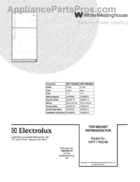 Parts for White Westinghouse WRT17MG4BW1: 01 - Cover Parts