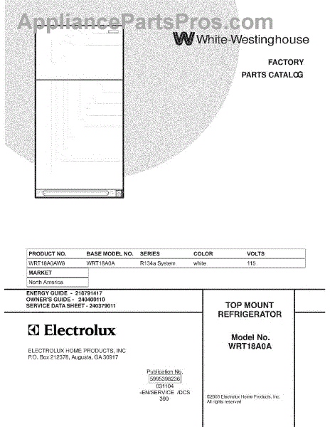 Parts for White Westinghouse WRT18A0AW8: 01 - Cover Parts