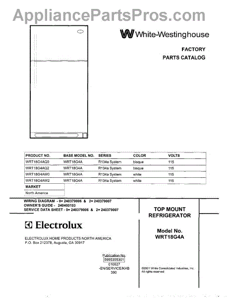 Parts for White Westinghouse WRT18G4AQ0: 01 - Cover Parts