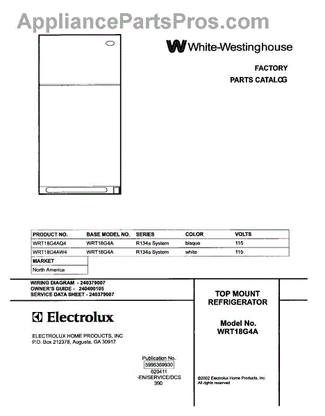 Parts for White Westinghouse WRT18G4AQ4: 01 - Cover Parts