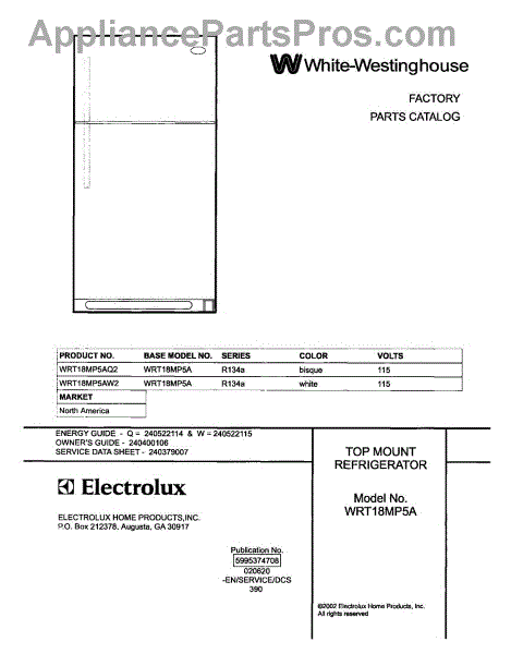 Parts for White Westinghouse WRT18MP5AW2: 01 - Cover Parts