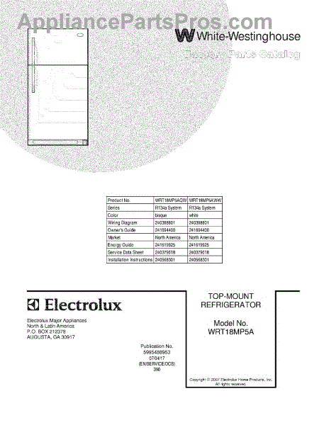 Parts for White Westinghouse WRT18MP5AWW: 01 - Cover Parts