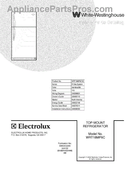 Parts for White Westinghouse WRT18MP6CS2: 01 - Cover Parts