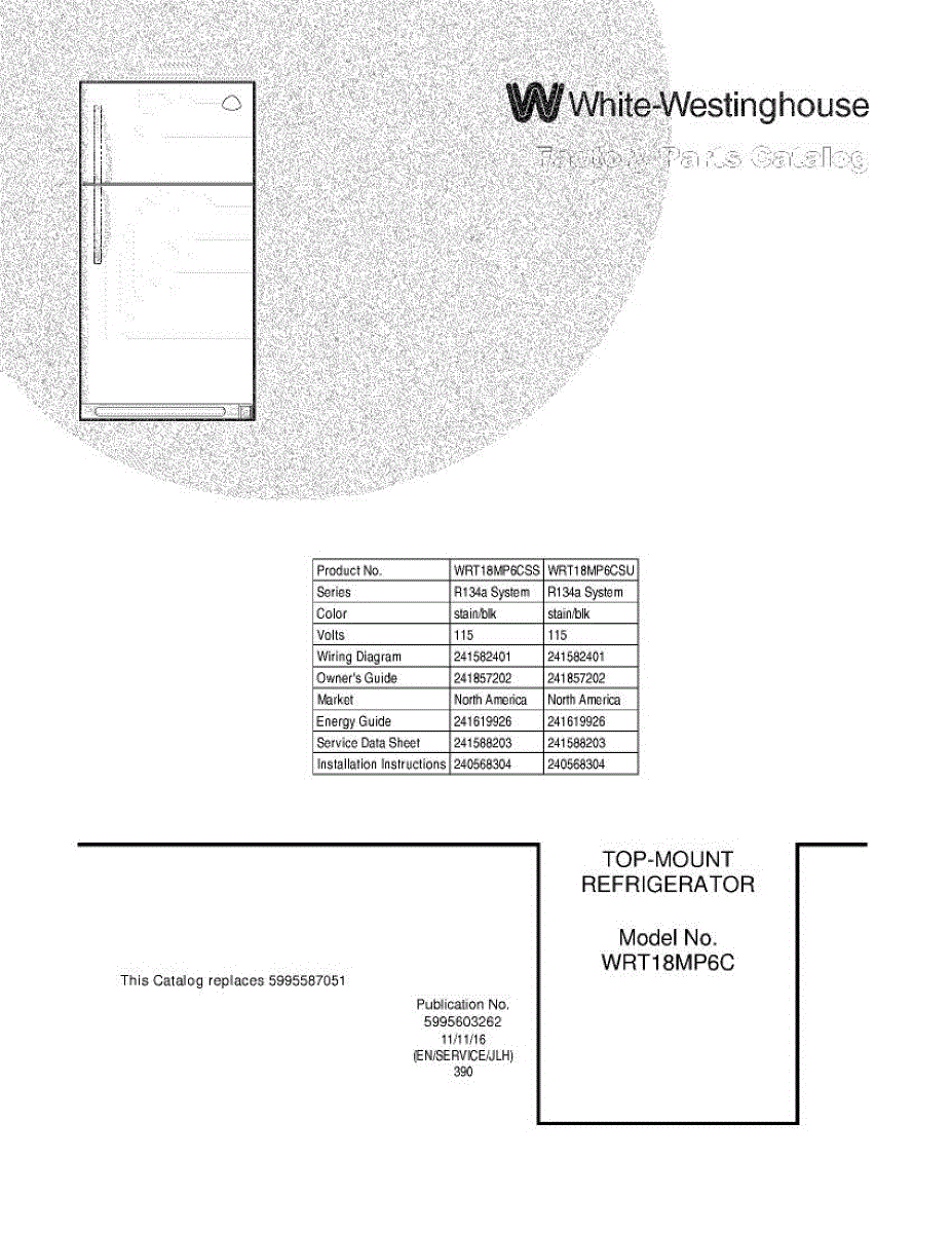 Parts for White Westinghouse WRT18MP6CSS: 01 - Cover Parts