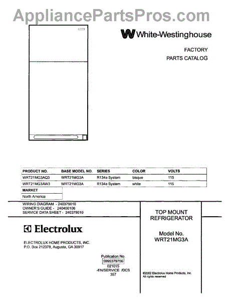 Parts for White Westinghouse WRT21MG3AQ3: 01 - Cover Parts