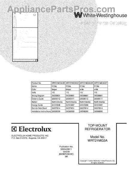 Parts for White Westinghouse WRT21MG3AQ7: 01 - Cover Parts