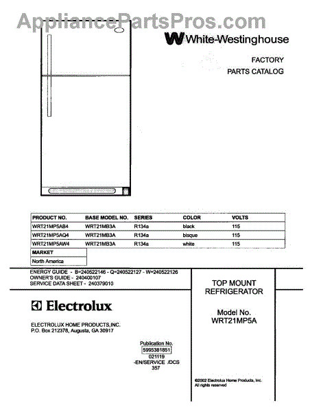 Parts for White Westinghouse WRT21MP5AQ4: 01 - Cover Parts