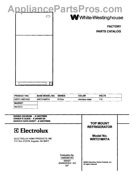 Parts for White Westinghouse WRT21MR7AS0: 01 - Cover Parts