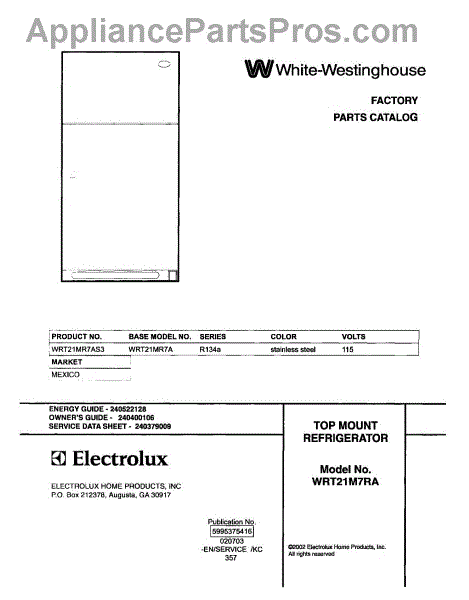 Parts for White Westinghouse WRT21MR7AS3: 01 - Cover Parts