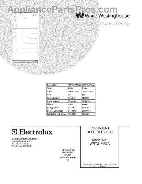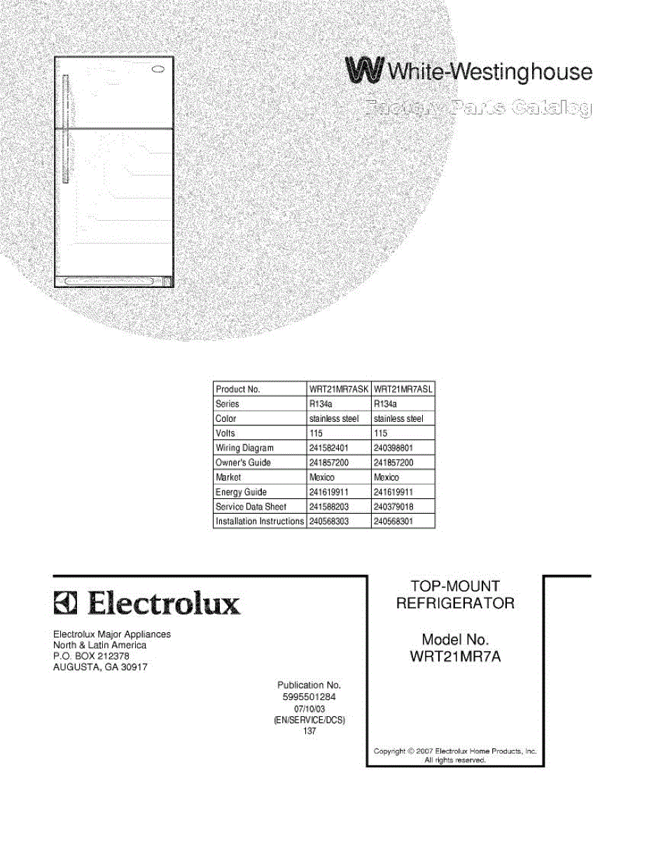 Parts for White Westinghouse WRT21MR7ASK: 01 - Cover Parts
