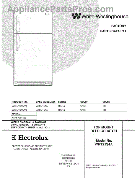 Parts for White Westinghouse WRT21S4AW5: 01 - Cover Parts
