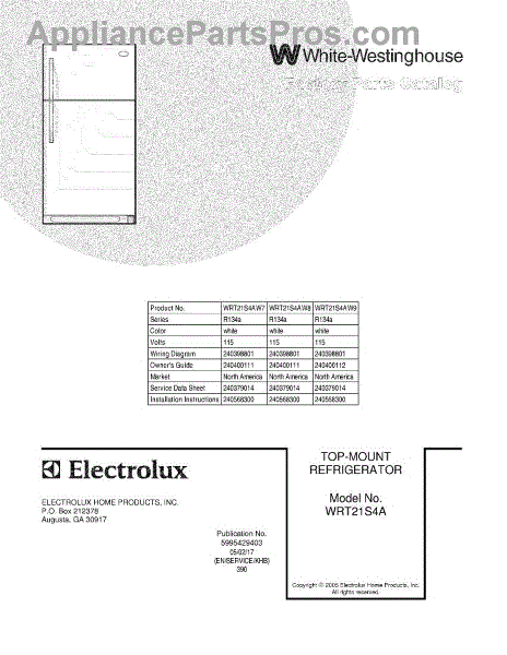 Parts for White Westinghouse WRT21S4AW9: 01 - Cover Parts