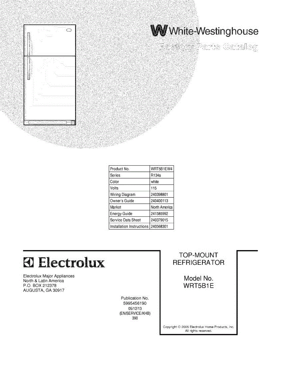 Parts for White Westinghouse WRT5B1EW4: 01 - Cover Parts