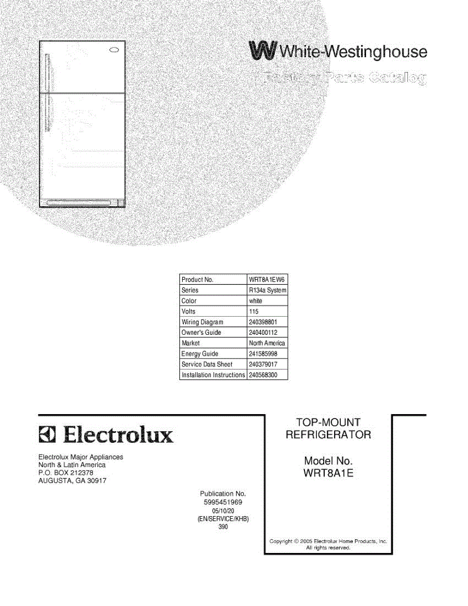 Parts for White Westinghouse WRT8A1EW6: 01 - Cover Parts