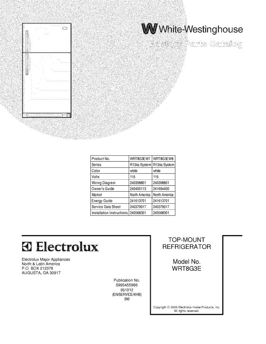 Parts for White Westinghouse WRT8G3EW8: 01 - Cover Parts