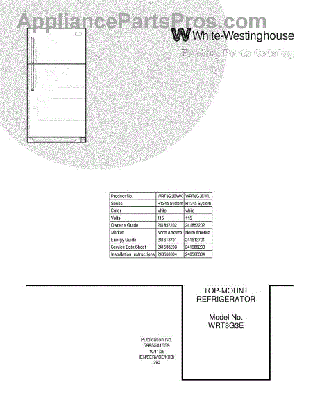 Parts for White Westinghouse WRT8G3EWL: 01 - Cover Parts