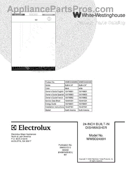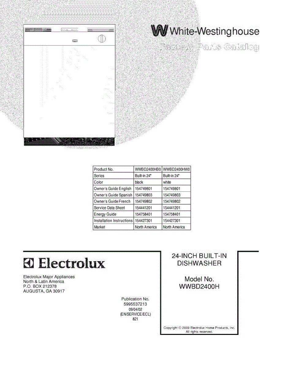 Parts for White Westinghouse WWBD2400HW0: 01 - Cover Parts
