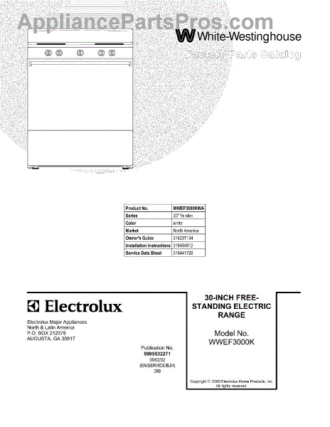 Parts for White Westinghouse WWEF3000KWA: 01 - Cover Parts