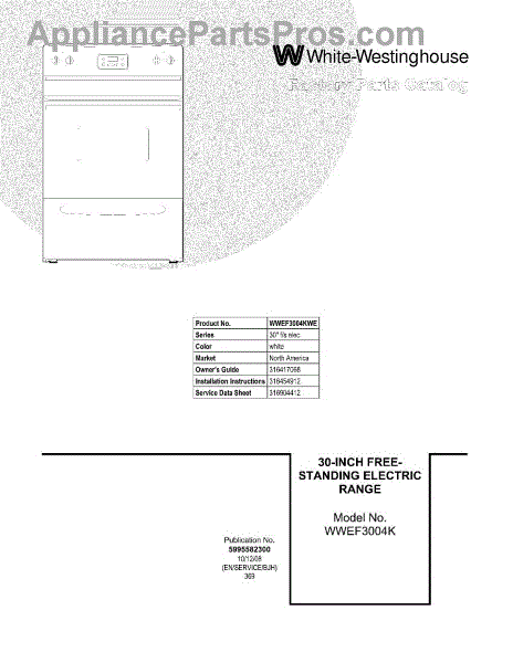 Parts for White Westinghouse WWEF3004KWE: 01 - Cover Parts
