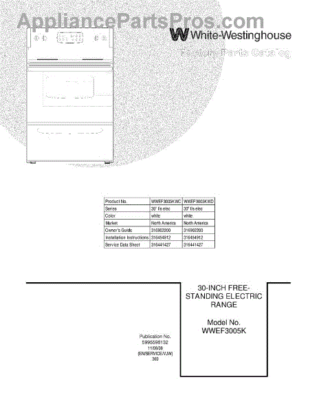 Parts for White Westinghouse WWEF3005KWD: 01 - Cover Parts