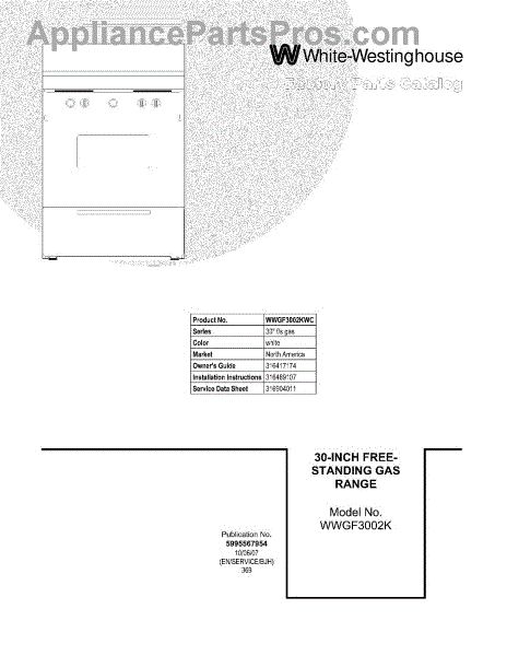 Parts for White Westinghouse WWGF3002KWC: 01 - Cover Parts