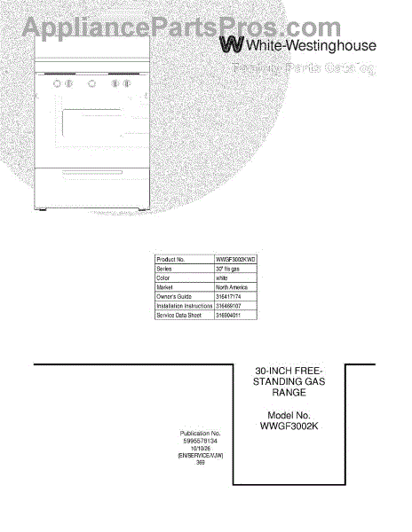 Parts for White Westinghouse WWGF3002KWD: 01 - Cover Parts