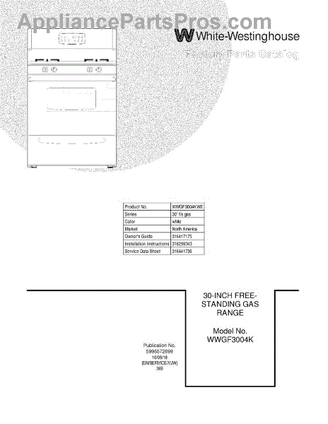 Parts for White Westinghouse WWGF3004KWE: 01 - Cover Parts