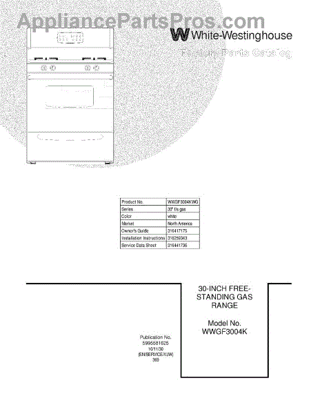 Parts for White Westinghouse WWGF3004KWG: 01 - Cover Parts