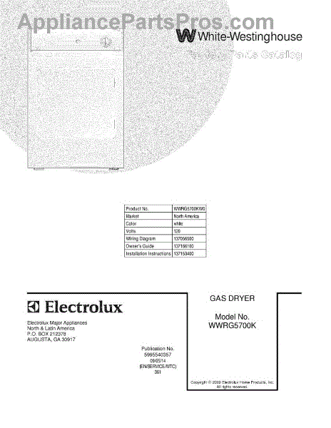 Parts for White Westinghouse WWRG5700KW0: 01 - Cover Parts