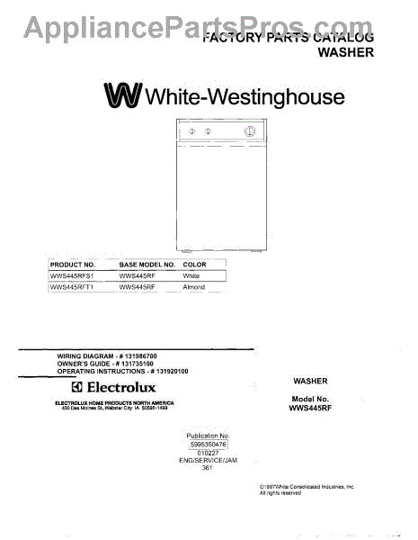 Parts for White Westinghouse WWS445RFT1: 01 - Cover Parts
