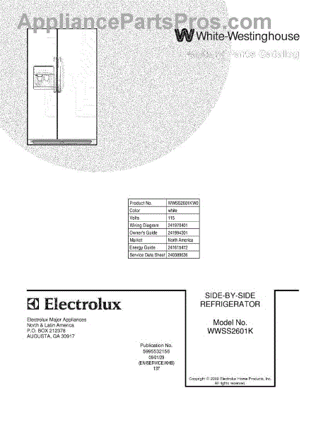 Parts for White Westinghouse WWSS2601KW0: 01 - Cover Parts