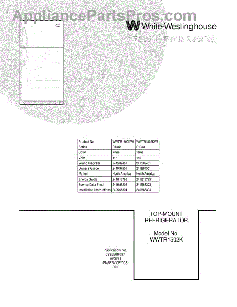 Parts for White Westinghouse WWTR1502KW6: 01 - Cover Parts