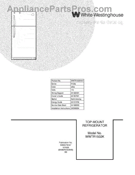Parts for White Westinghouse WWTR1502KW7: 01 - Cover Parts