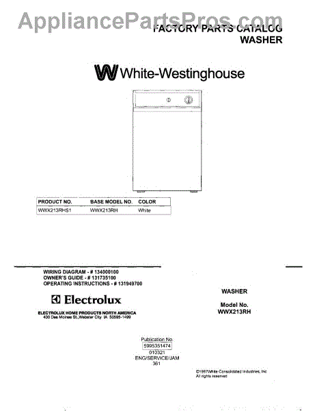 Parts for White Westinghouse WWX213RHS1: 01 - Cover Parts