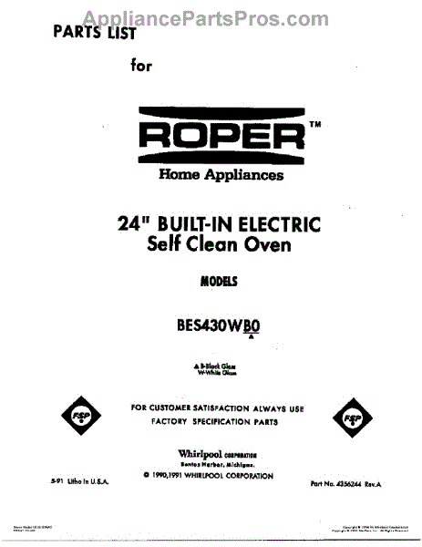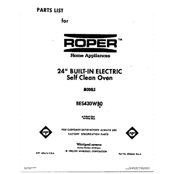 Parts for Whirlpool BES430WB0: 01 - Cover Parts