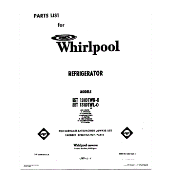 Parts for Whirlpool EET131DTWR0: 01 - Cover Parts