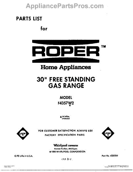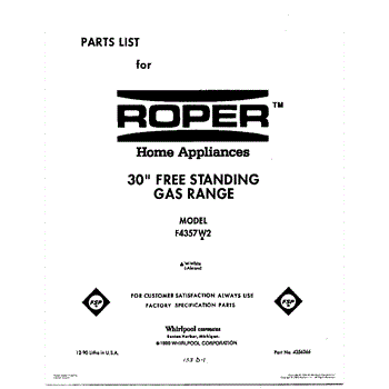 Parts for Whirlpool F4357L2: 01 - Cover Parts