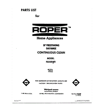 Parts for Whirlpool F6558X0: 01 - Cover Parts