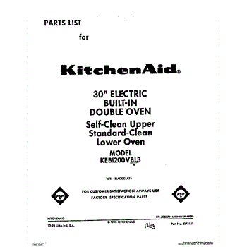 Parts for Kitchenaid KEBI200VBL3: 01 - Cover Parts