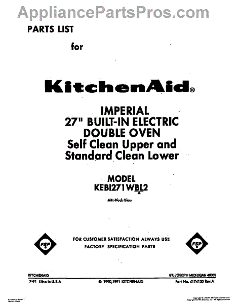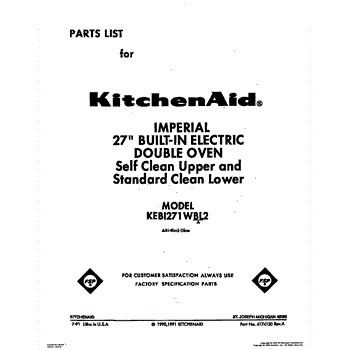 Parts for Kitchenaid KEBI271WBL2: 01 - Cover Parts