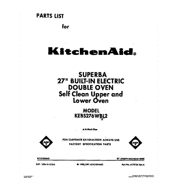 Parts for Kitchenaid KEBS276WBL2: 01 - Cover Parts