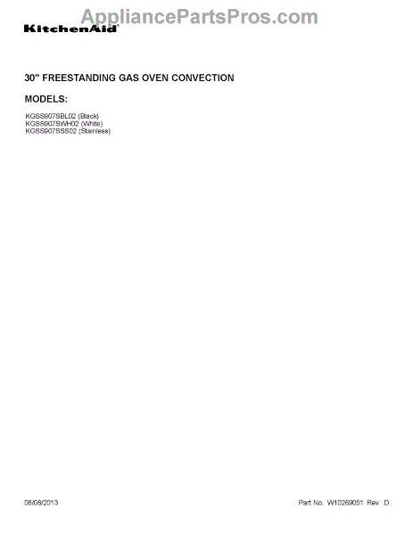 Parts for Kitchenaid KGSS907SSS02: 00 - Cover Page Parts