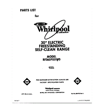 Parts for Whirlpool RF365PXXN0: 01 - Cover Parts